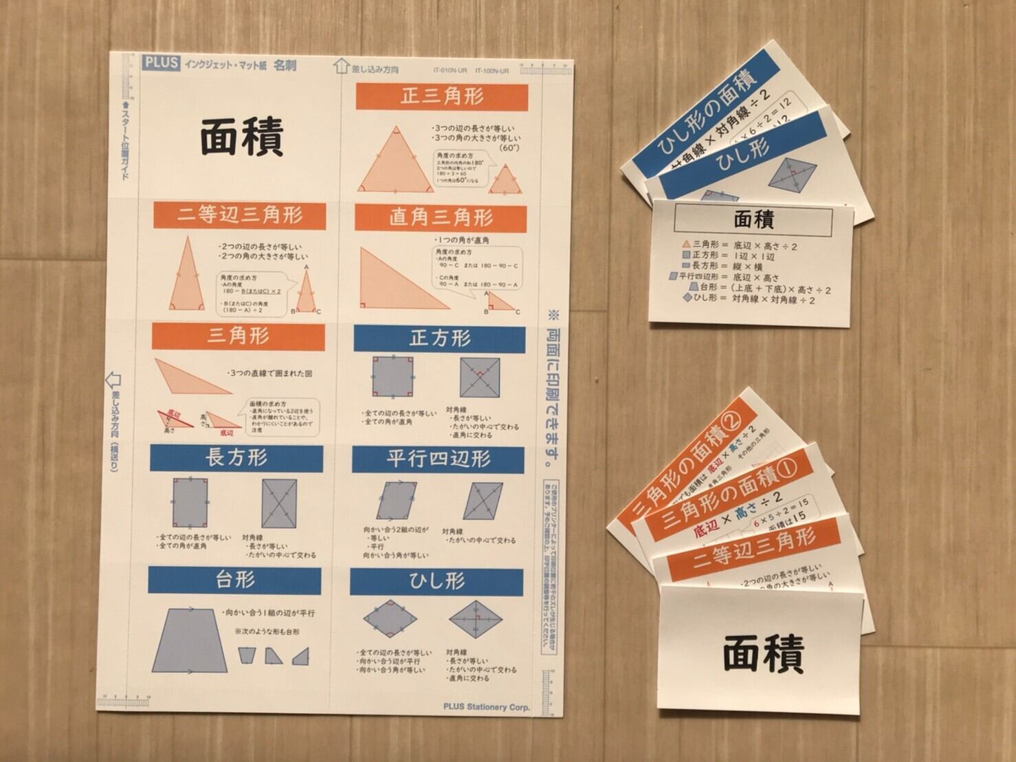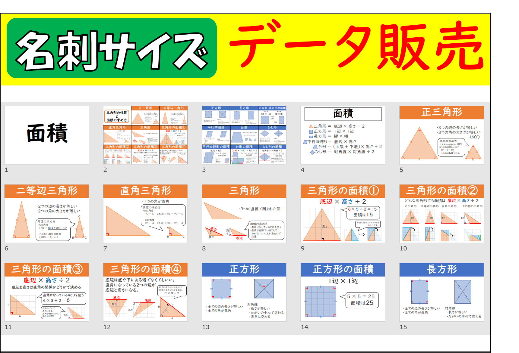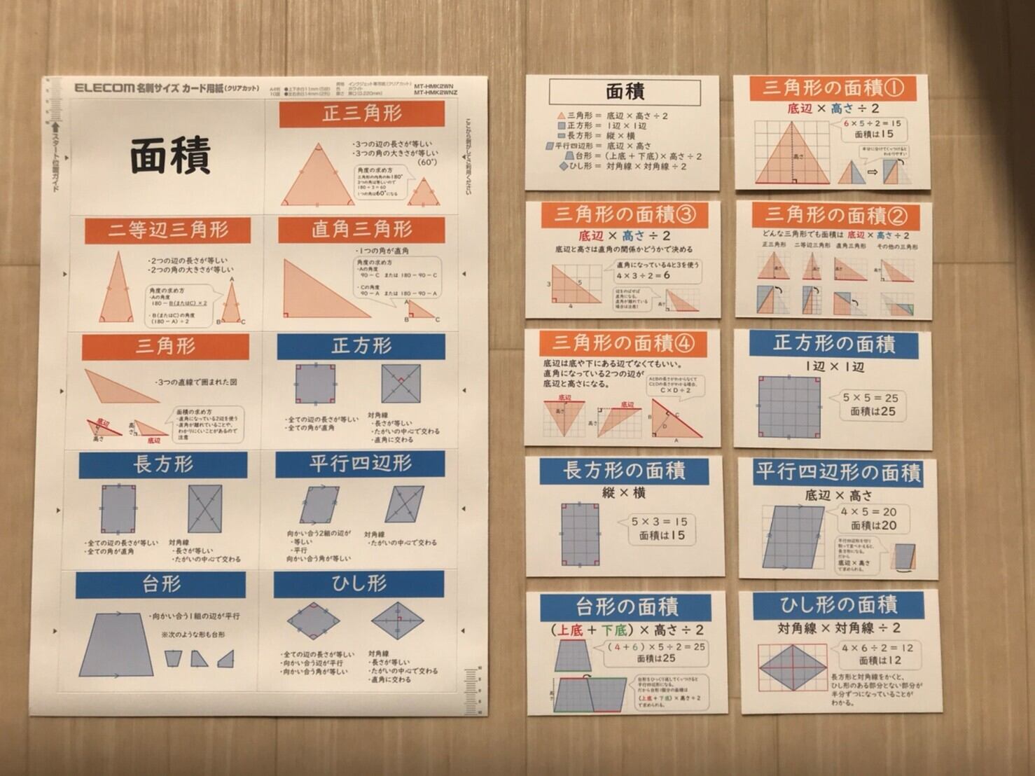 カードサイズの平面図形の特徴と面積の求め方です。