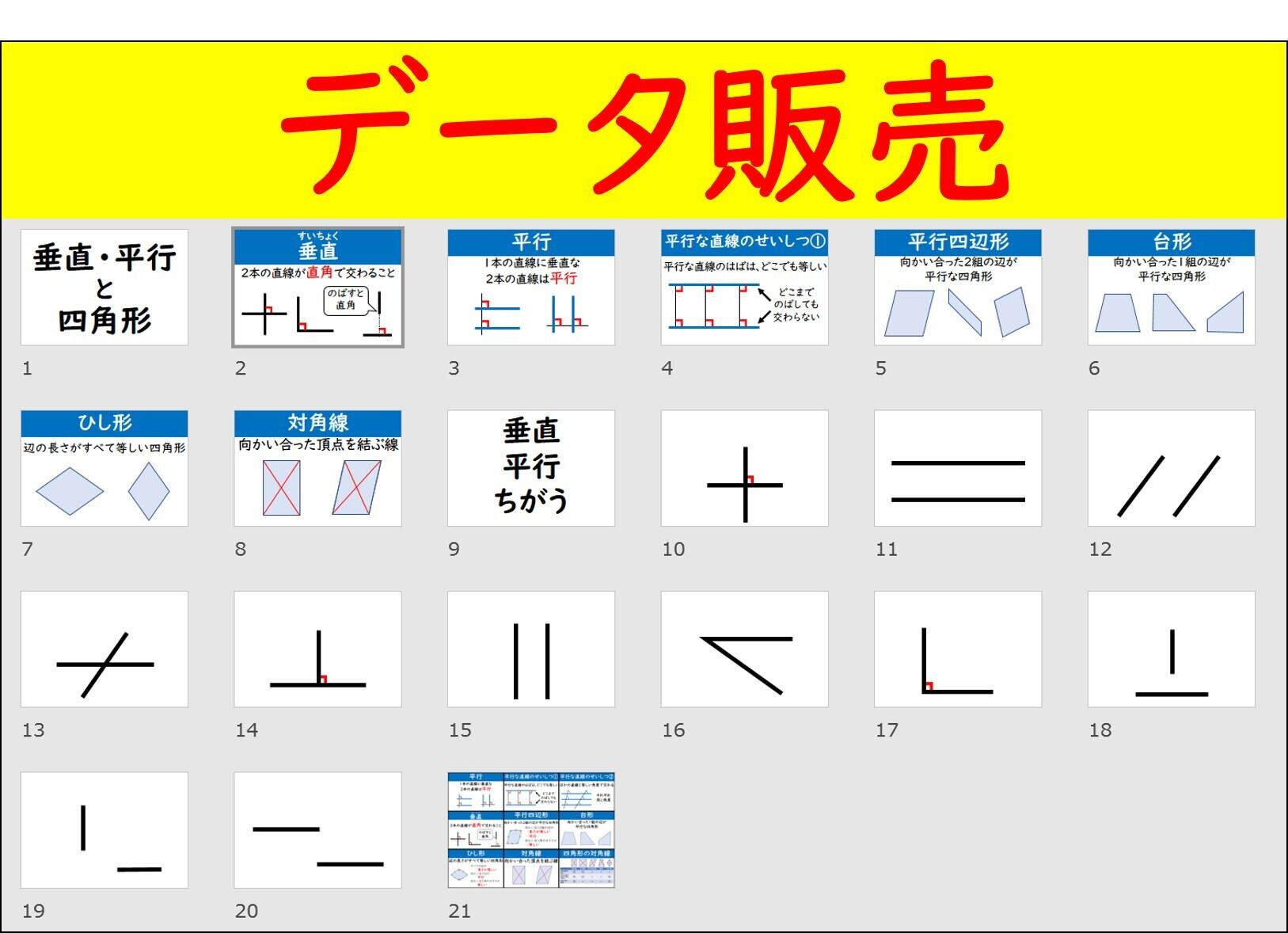 子どもに覚えてもらいたい基礎の内容と、垂直と平行の練習問題を用意しています。